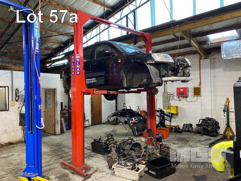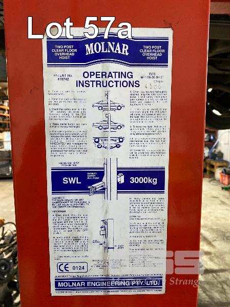 MOLNAR 2 POST CLEAR FLOOR OVERHEAD CAR HOIST, TYPE: MF-1705-93-0H-3T, SERIAL: 4686, 3000kg SWL, 415v (BUYER TO REMOVE, LICENCED TECHNICIAN REQUIRED)