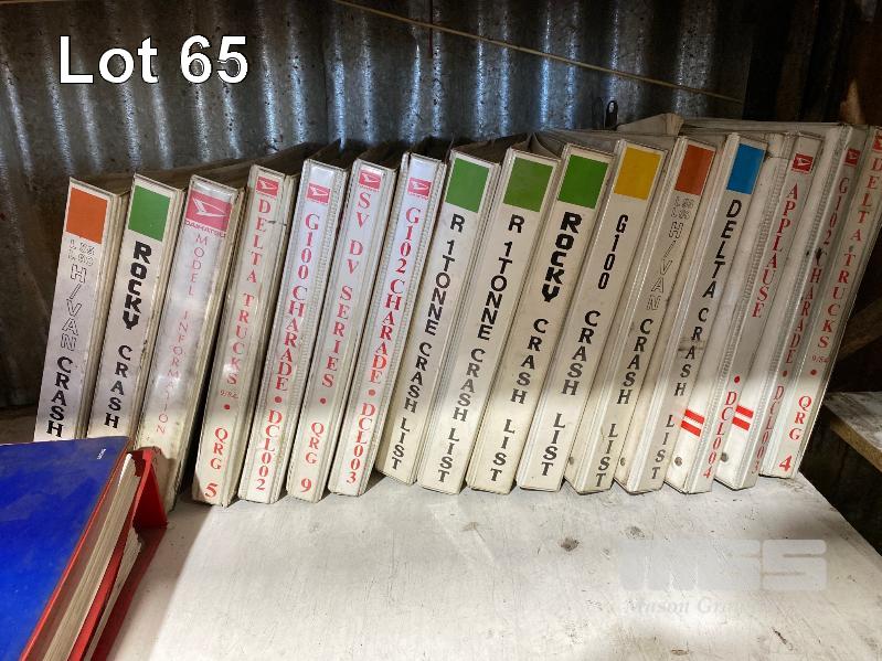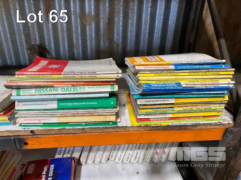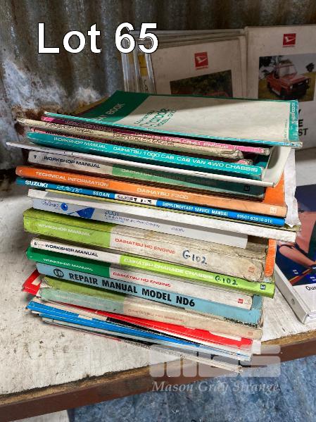 LARGE QUANTITY AUTO MANUALS, APPROX 100 TOTAL, BRANDS INCLUDING, NISSAN, DATSUN, DAIHATSU, SUZUKI ETC.