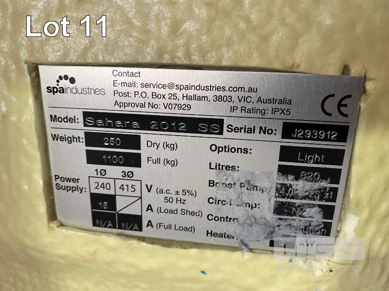 SPA INDUSTRIES 5 SEATER HOT TUB, SELF CONTAINED, MODEL: SAHARA 2012 SS, SERIAL: J293912, 820L CAP, WITH COVER