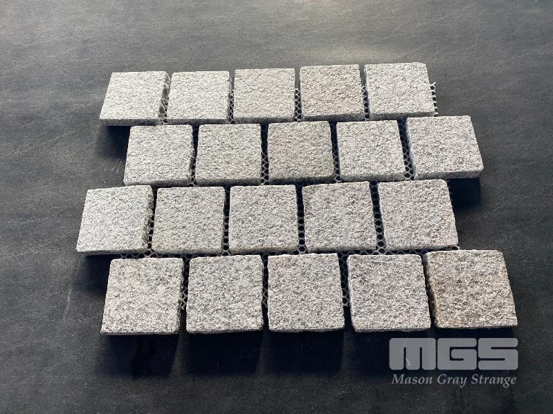 1 x CRATE COBBLESTONE PAVERS, DARK GREY GRANITE, STONE: 100 x 100 x 20mm, SHEET: 540 x 430 x 20mm, 99 SHEETS TOTAL