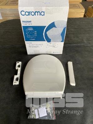 5 x CAROMA TRIDENT TOILET SEATS, WHITE, NEW IN BOX