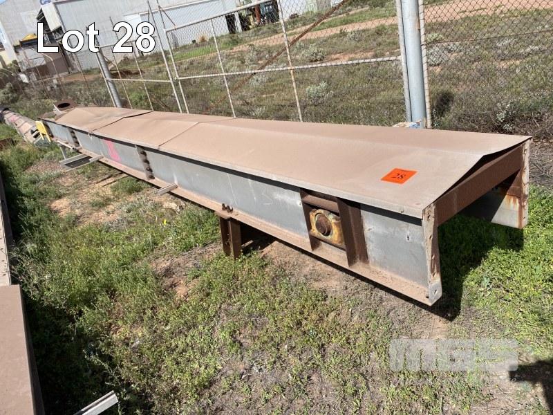 CONVEYOR SECTION WITH ENCLOSED COVER, INCLUDES ROLLERS, APPROX 8m LONG SUIT 450mm BELT 415v DRIVE MOTOR & END DRUM