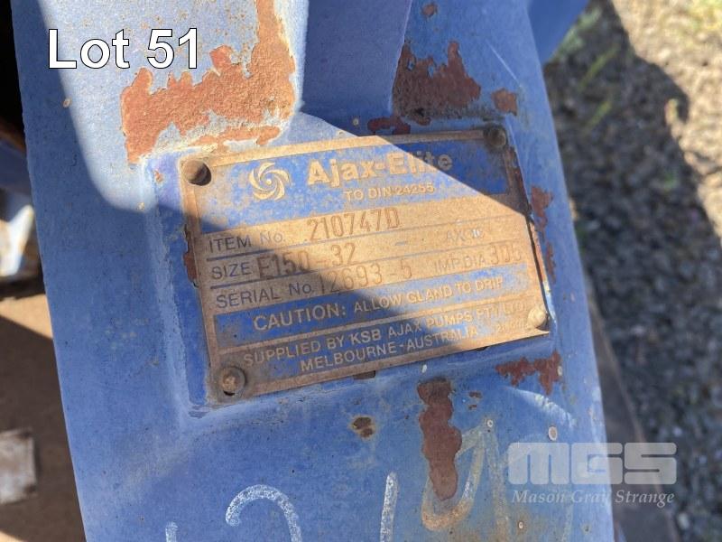 AJAX CENTRIFUGAL PUMP, MODEL: 21074-7D, SIZE: E150-32, WITH NR VALVE & SHUT OFF VALVE, TECO 415v 45kw MOTOR, 4180rpm