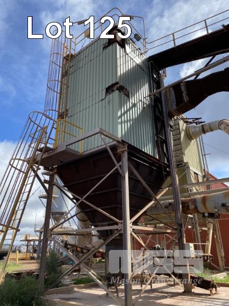 INSULATED BAG HOUSE WITH BASE HOPPER, SCREW CONVEYOR OUTFEED ON STAND