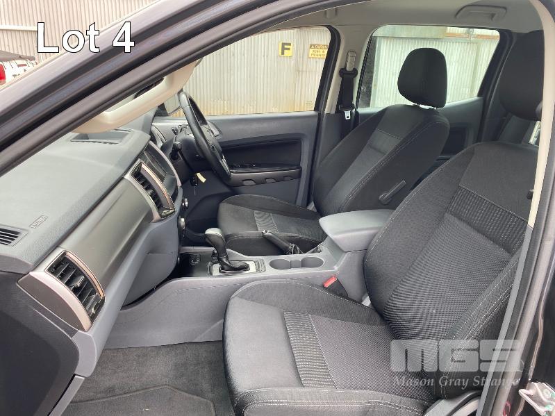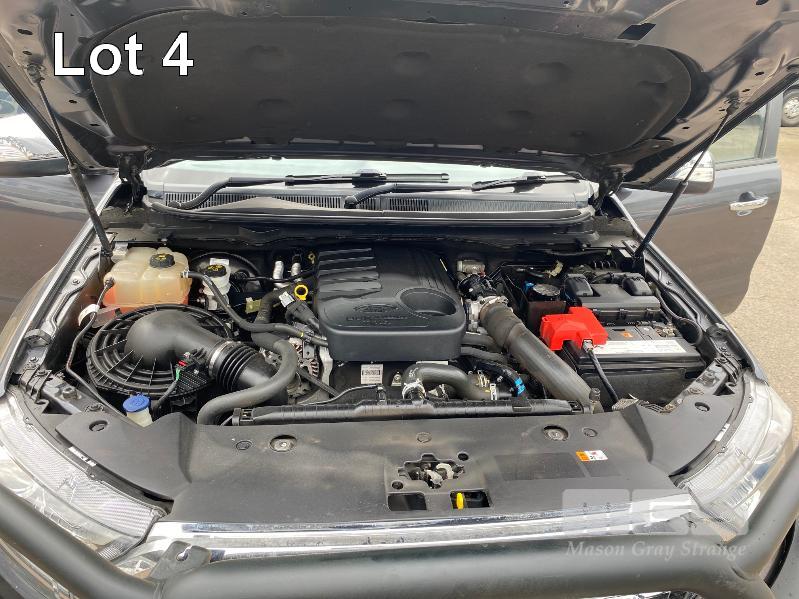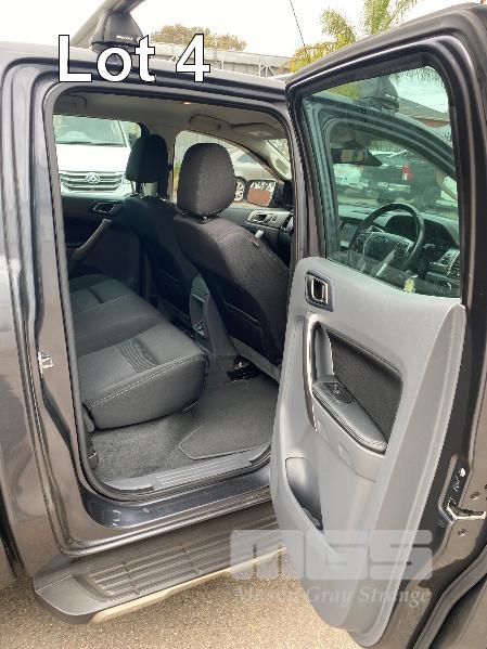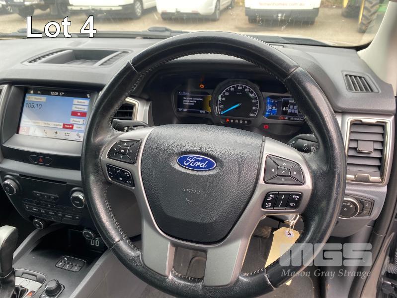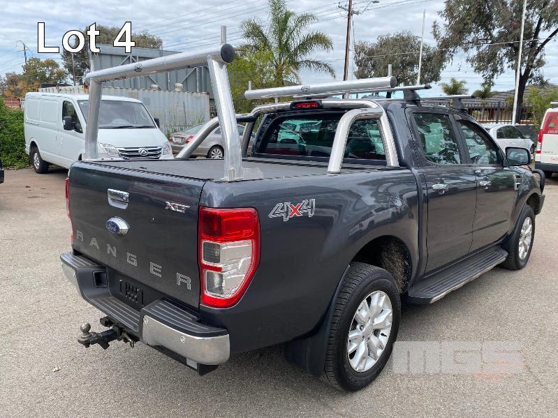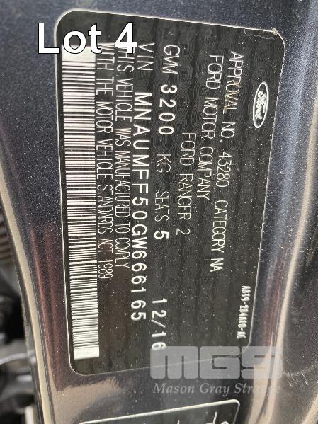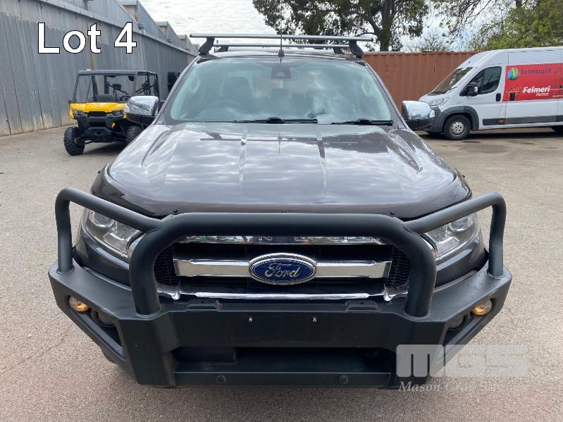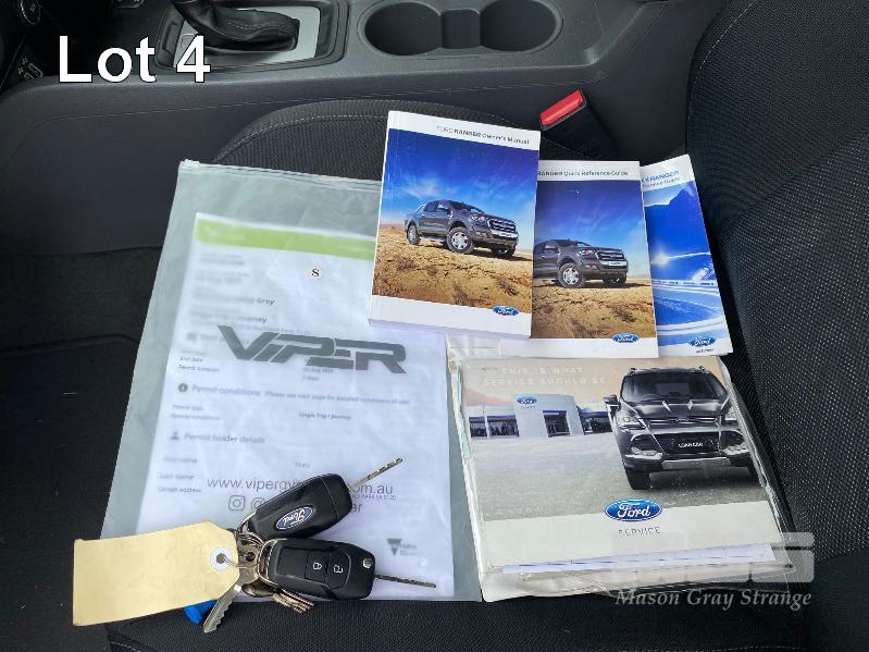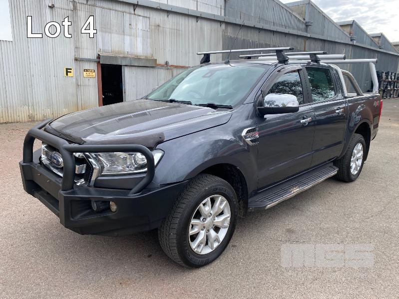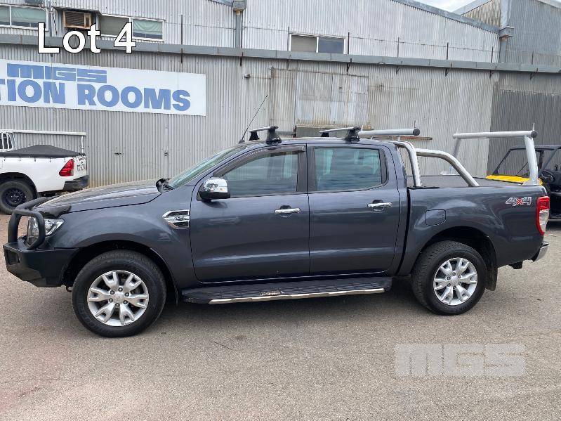 2016 FORD RANGER 2, XLT DUAL CAB UTE 4x4 REG: NO PLATES VIN: MNAUMFF50GW666165 ODO: 227,848kms SHOWING 3.2 LITRE TURBO DIESEL, 6 SPEED AUTOMATIC TRANSMISSION, GREY DUCO, 4 DOORS, 5 SEAT, 4x4 ABS, AIR BAG, AIR CON, ALLOY WHEELS, BLUETOOTH, BULL BAR, CENTRAL LOCKING, CRUISE CONTROL, IMMOBILISER, LADDER RACK, POWER STEERING, POWER WINDOWS, ROOF RACKS, SIDE STEP, SPARE WHEEL, TOW BAR, TRACTION CONTROL, REVERSE CAMERA & LCD CONCERTINA SLIDING UTE COVER, LOCKABLE WITH KEY ALLOY ROLL BAR & RACK KEY #5 (WITH 2 KEY/S, WITH OWNER'S MANUAL, WITH SERVICE BOOKS)