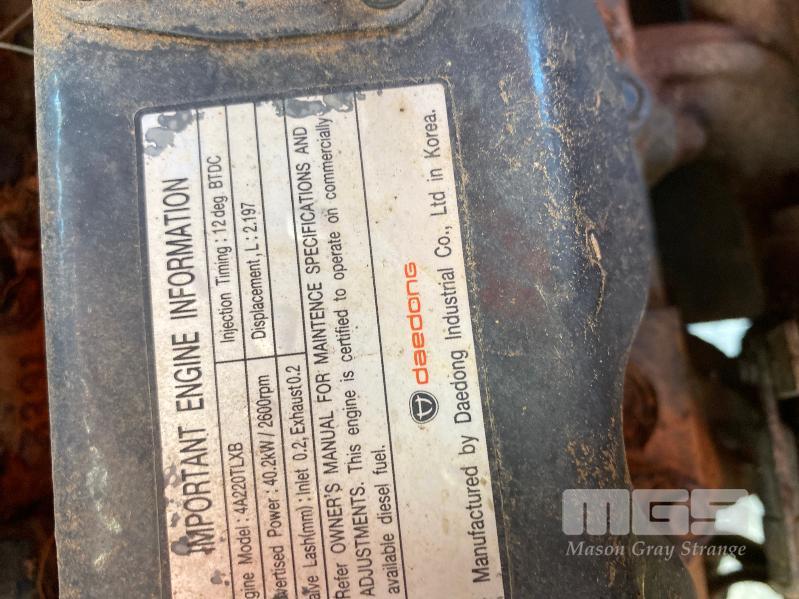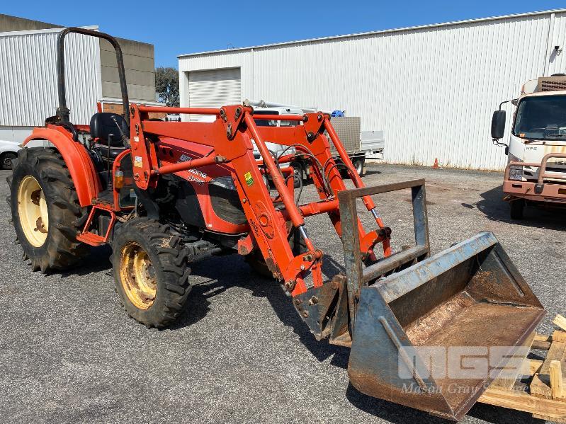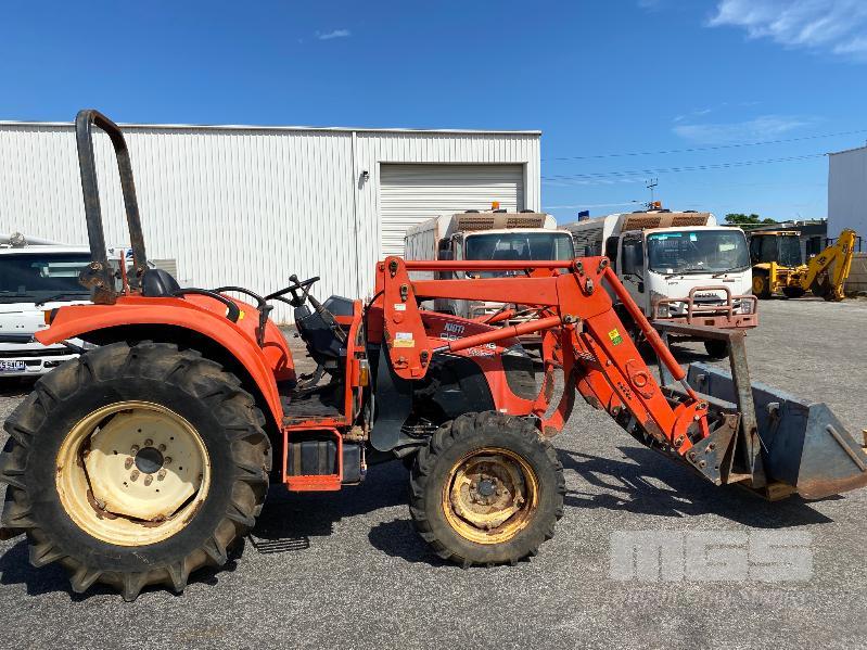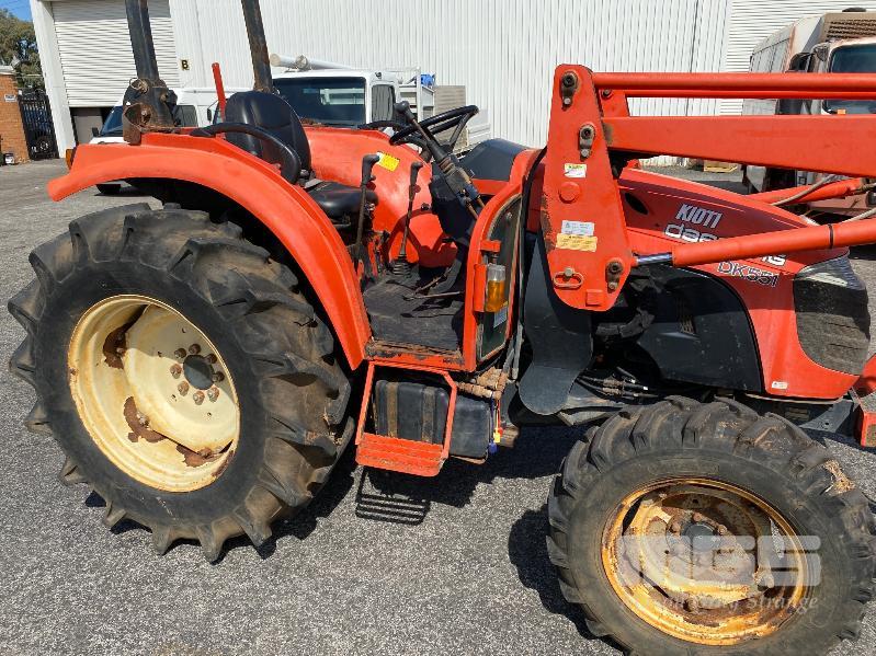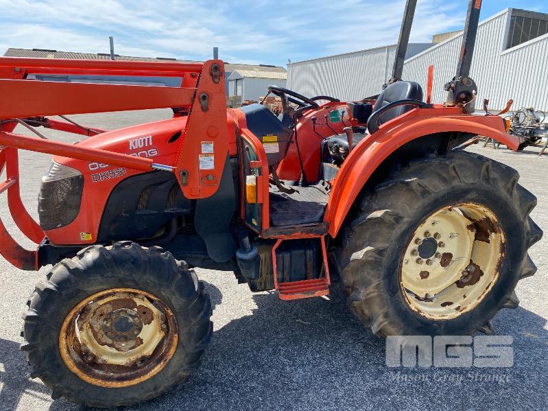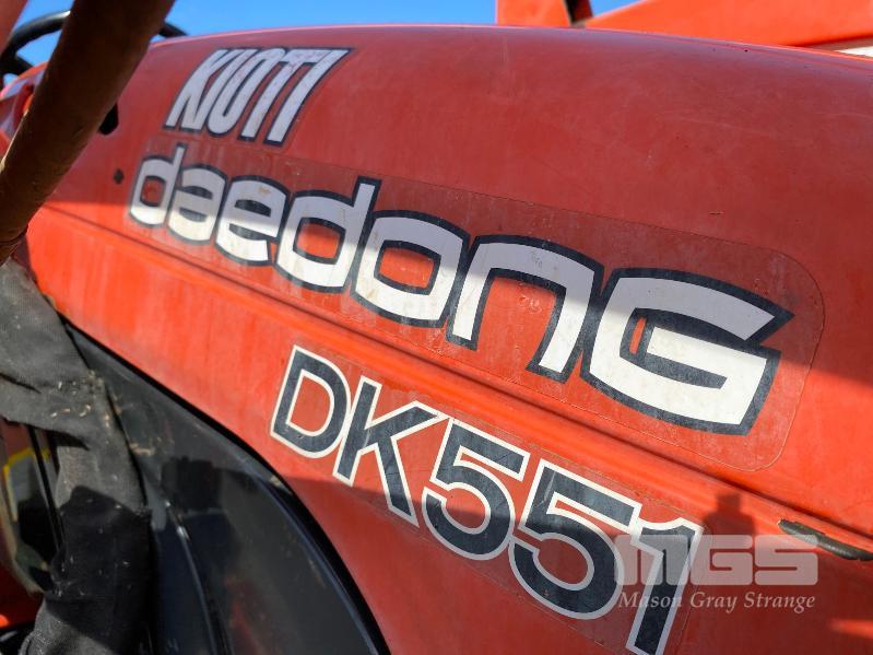 KIOTO, DAEDONG DK551 4x4 TRACTOR FRONT END LOADER REG: S41 STC (SA) HOURS: 4,081hours SHOWING 40kw DIESEL, MANUAL TRANSMISSION, S/NO: KA1100018 ENG MOD: 4A220TLXB FITTED WITH ROPS BAR, PTO, 3PTL 1650mm GP BUCKET & FORK TYNE ATTACHMENT KEY #38 (WITH 1 KEY/S)