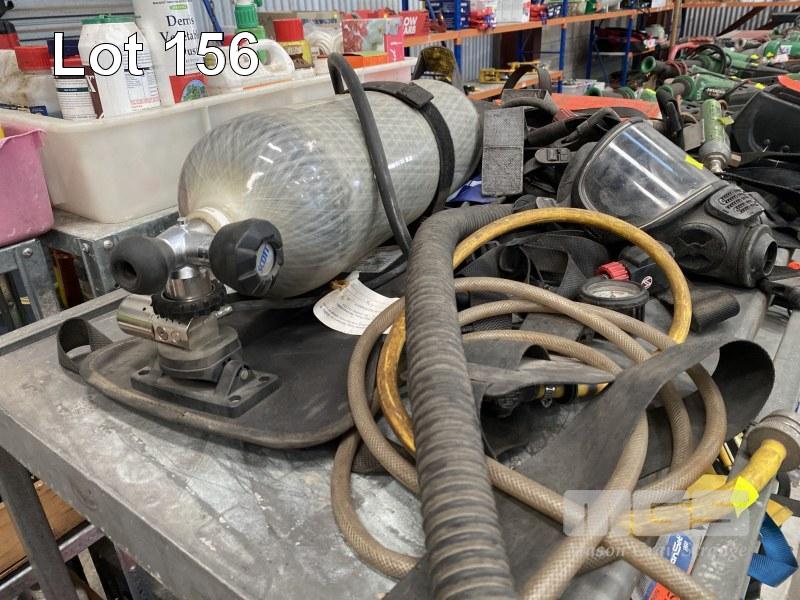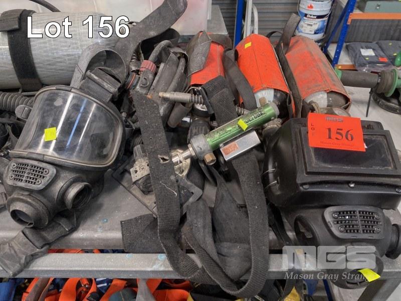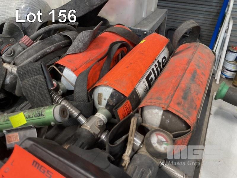 4 x PERSONNEL BREATHING APPARATUS, AIR TANKS, SABRE FLITE & SCOTT LUXFER, REG, FACE MASKS, HOSES, ETC