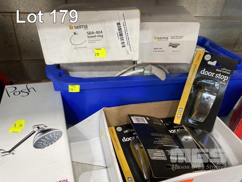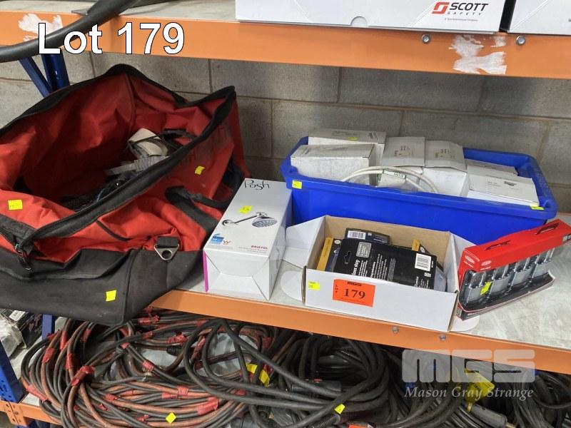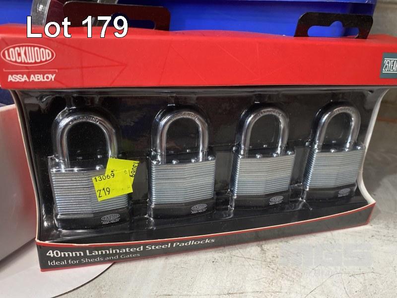 SHOWER HEAD, TOWEL RINGS, DOOR STOPS, SOAP HOLDERS, TOOL BAG & ASSORTED HAND TOOLS, 4 x PADLOCKS, LOCKWOOD ASSA ABLOY, 40mm
