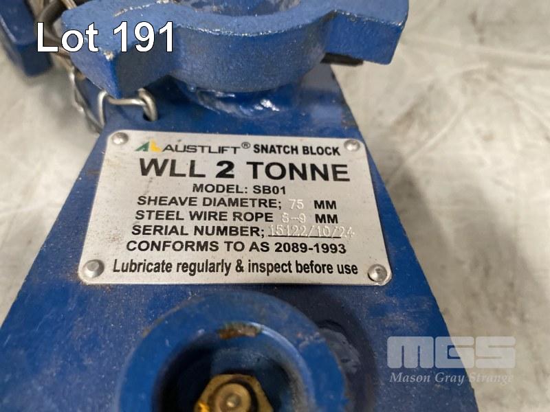 SNATCH BLOCK, AUST LIFT, 2 TONNE, 8-9m ROPE