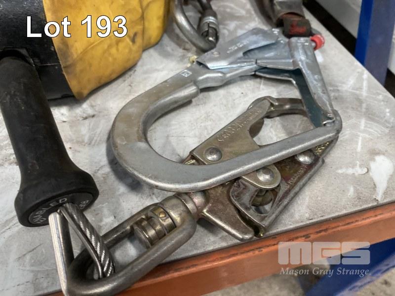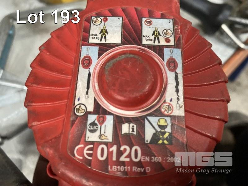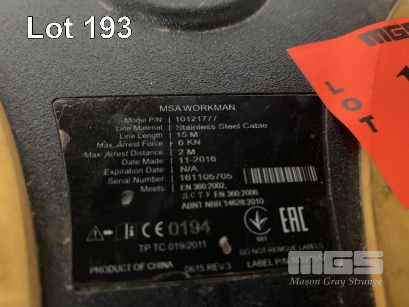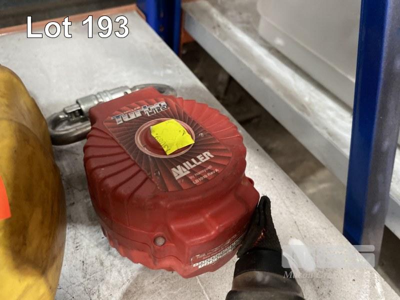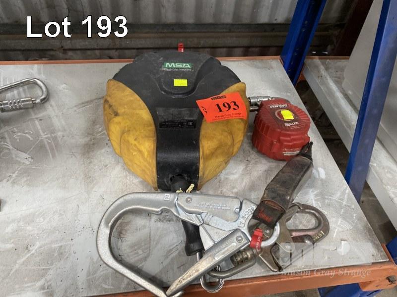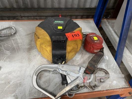 2 x FALL ARREST DEVICES, RETRACTABLE WIRE CABLE LIFE LINE, MSA WORKMAN, 15m & MILLER TUBO LITE