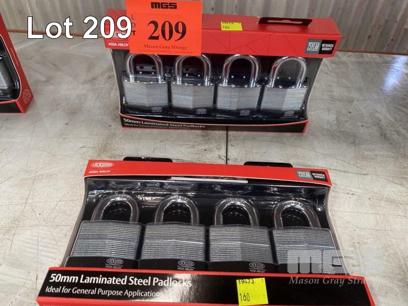 8 x STEEL PADLOCKS, LOCKWOOD, ASSA ABLOY,