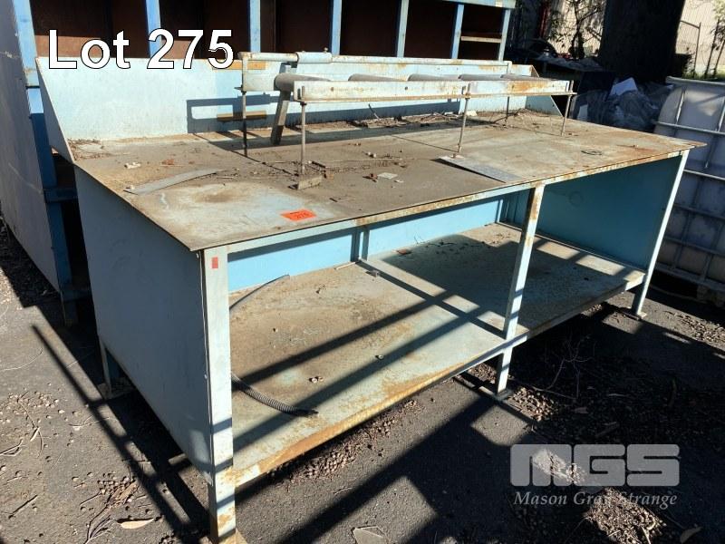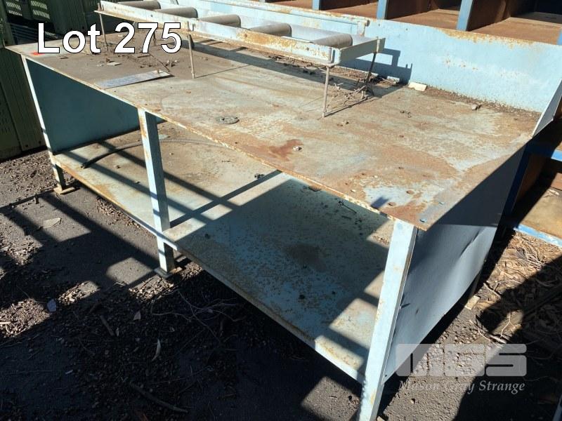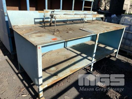 PLATE STEEL WORK BENCH, 2 TIER, 2500 x 1000 x 900mm (H) WITH BACK BOARD