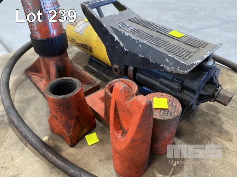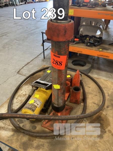 ENERPAC POWER HYDRAUILC HAND PUMP, INCLUDING RAM, EXTESIONS, ATTACHMENTS, ETC,