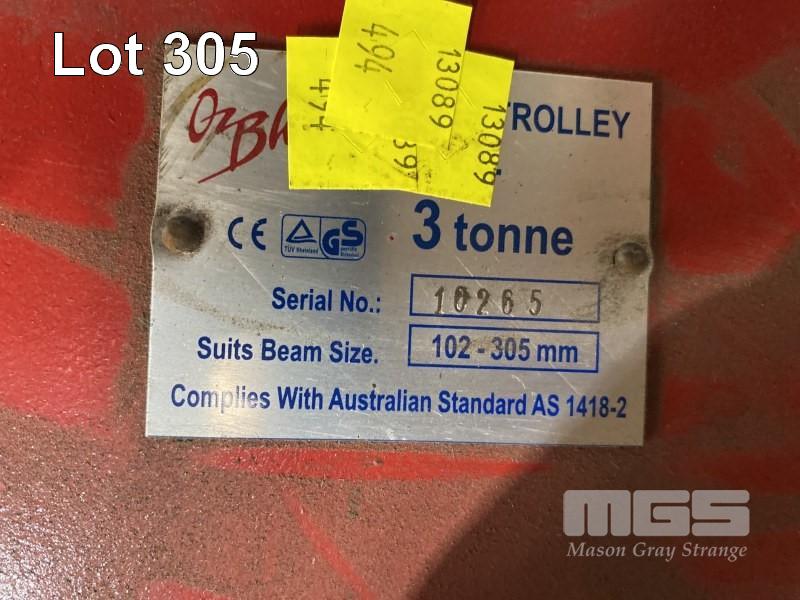 GIRDER TROLLEY, OZBLOCK, 3 TONNE, SUITS BEAM, SIZE 102-305mm