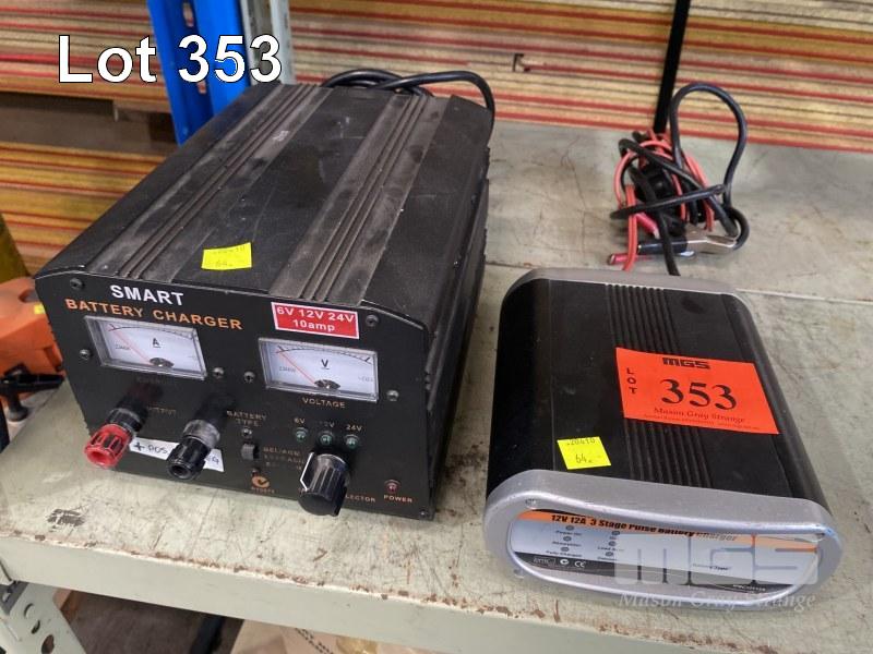2 x BATTERY CHARGERS, 1 x 6/12/24V, 10 AMP, CALIBRE 12V 12A PULSE CHARGER