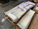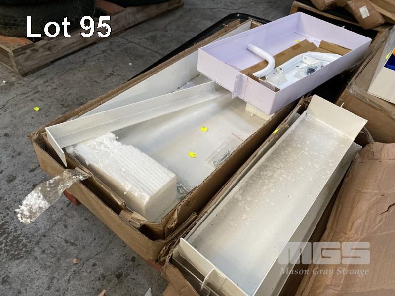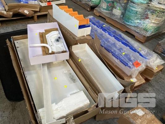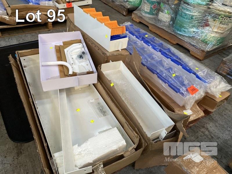TRADIES SHELVING FIT OUT TO SUIT VAN INCLUDING 1 x STEEL SHELF TRAY, 950 x 430mm 2 x PARTS DRAWER SHELVES, 950 x 170mm, 3 x PARTS DRAWER SHELVES, 550 x 150mm WITH PARTS DRAWERS & 2 x OIL DRIP TRAYS, 1 x PALLET