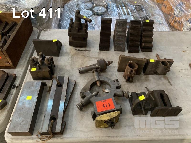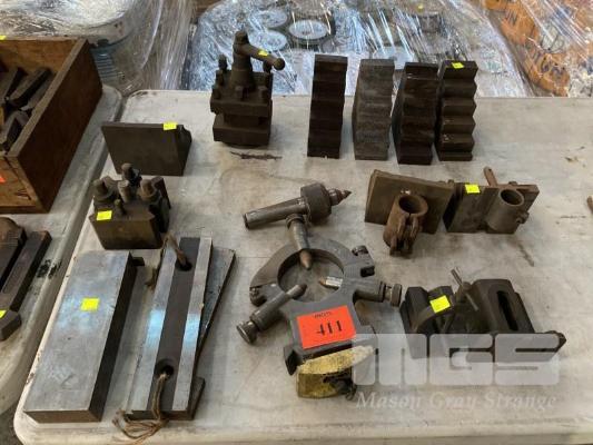 LATHE STEADY, 100mm (D), LIVE CENTRE, 4 x STEPPING BLOCKS, 140 x 140 x 65mm, TOOL HOLDER, 'V' BLOCK, ANGLE PLATES ETC