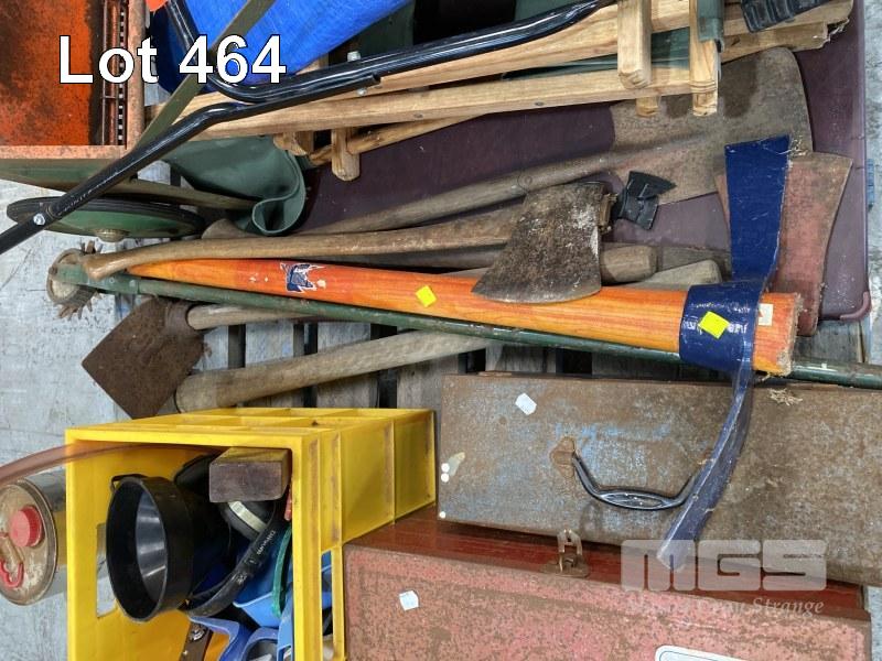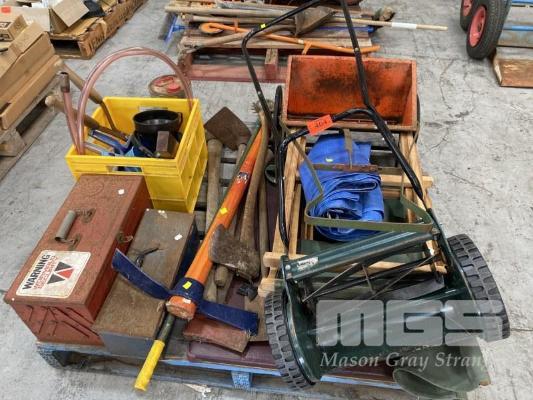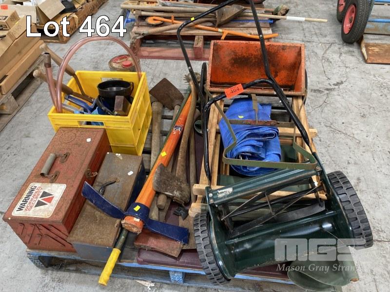 LAWN FERTILISER SPREADER, REEL MOWER, GARDEN TOOLS, AXE, MATTOCK, TOOLBOXES & TOOLS ETC
