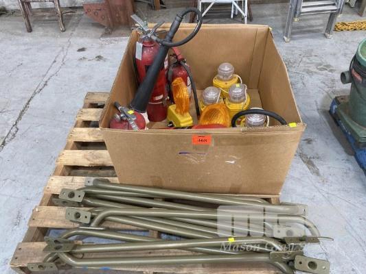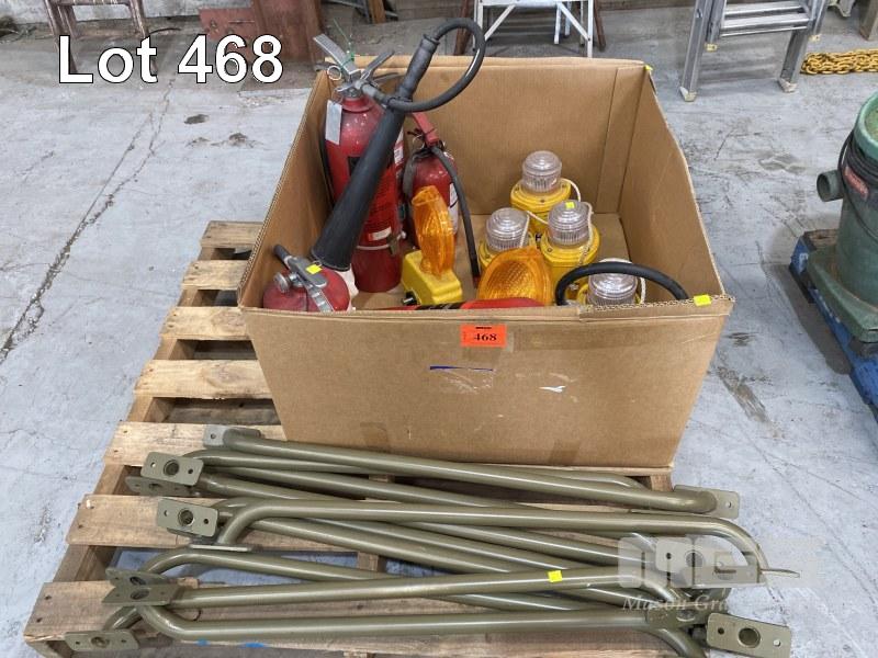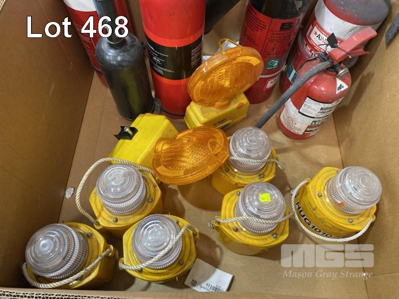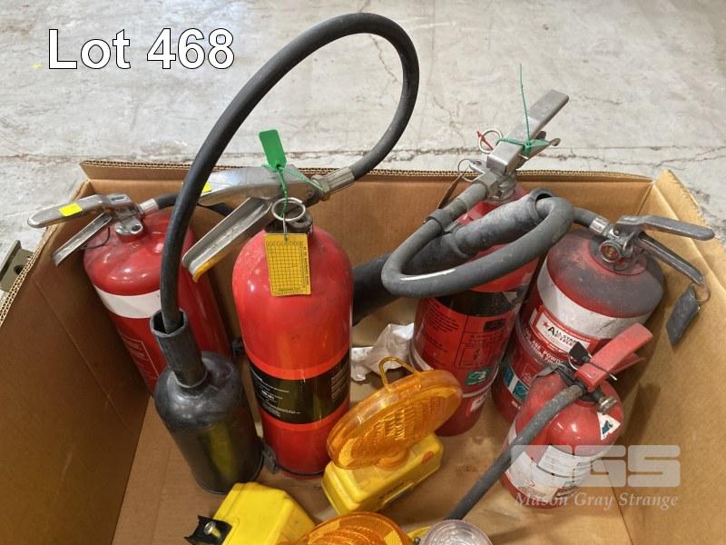 5 x ASSORTED FIRE EXTINGUISHERS, DRY POWDER & CO2, STROBE HAZARD LIGHTS & GUIDE HAND RAILS