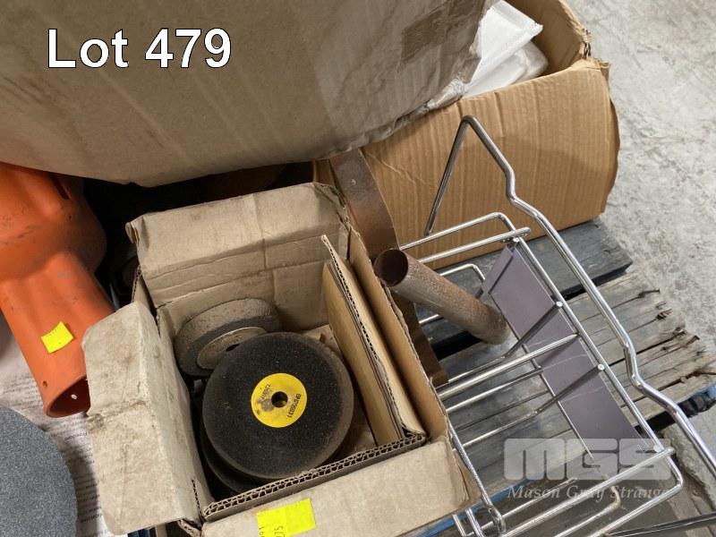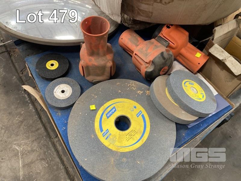 DOME MIRROR, SAFET-VIEW, GRINDING WHEELS, INC NORTON 200x25x25, 350x50x50, 125x19x12.7, VACUUM HOSE, FILTER BAGS, ETC
