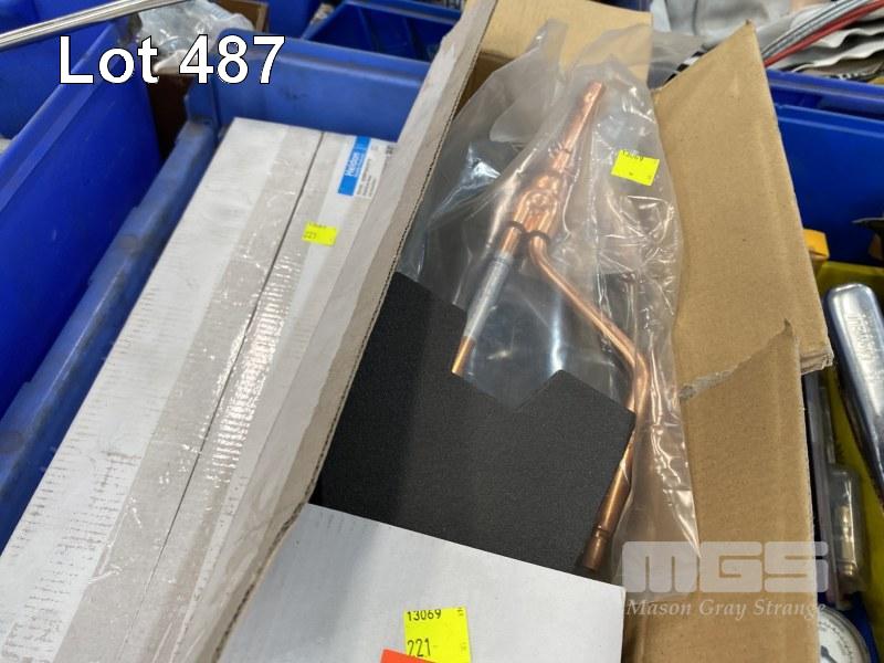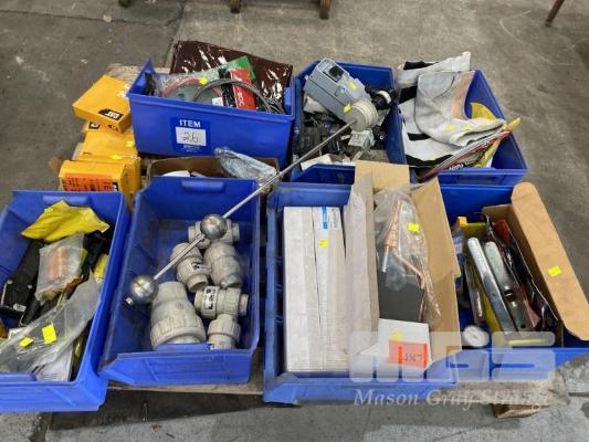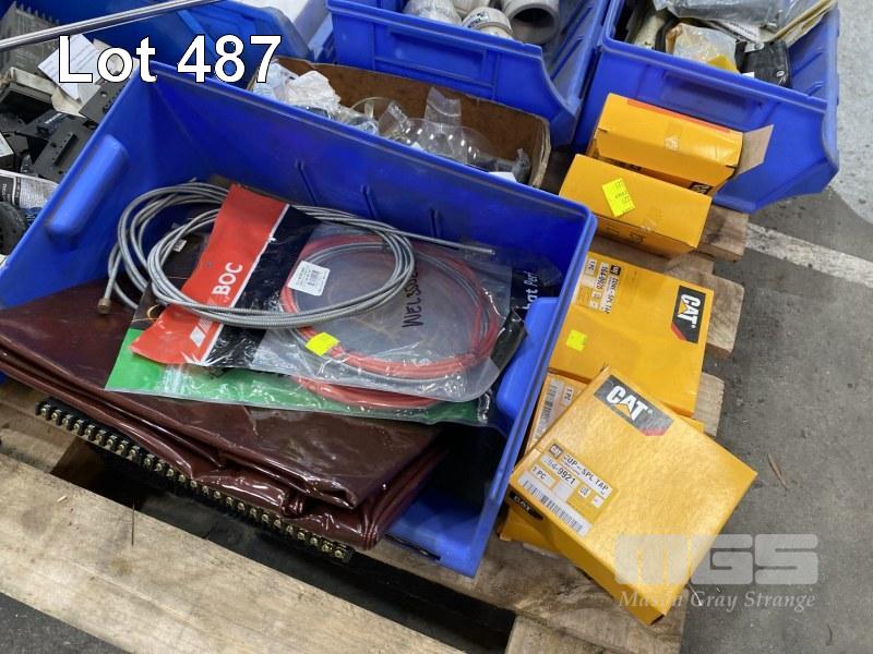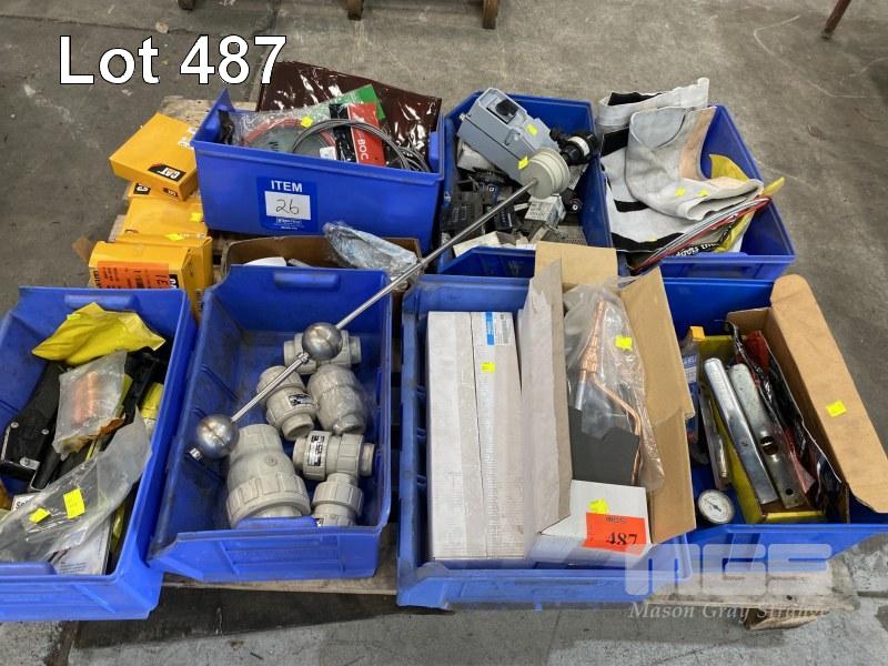 ASSORTED WELDING CLAMPS, WIRE LINERS, TIPS, SCREEN, LEATHER PROTECTORS, CAT PARTS CUP SPL-TAP, COPPER FITTINGS, WATER FLOAT LEVEL METER, ETC IN PARTS DRAWERS