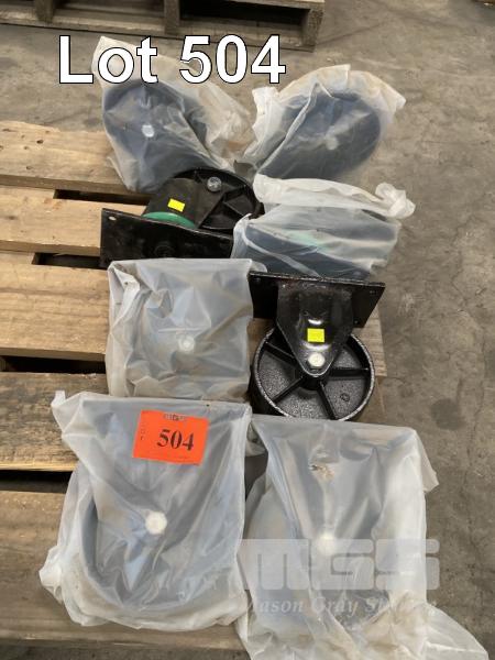 4 x FITTED CASTOR WHEELS & 4 x ROTATING CASTOR WHEELS, STEEL HEAVY DUTY