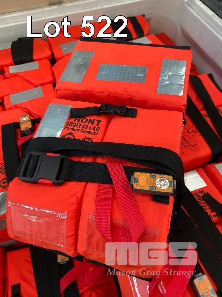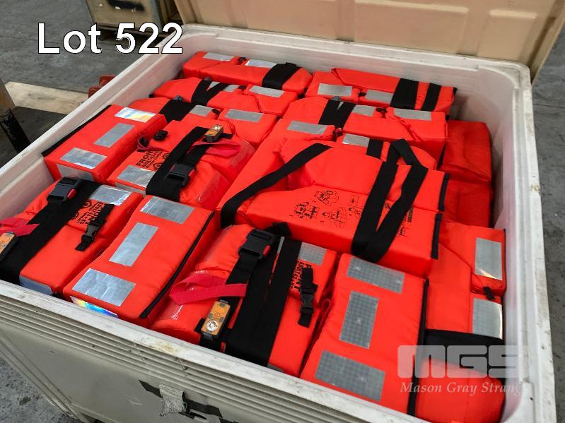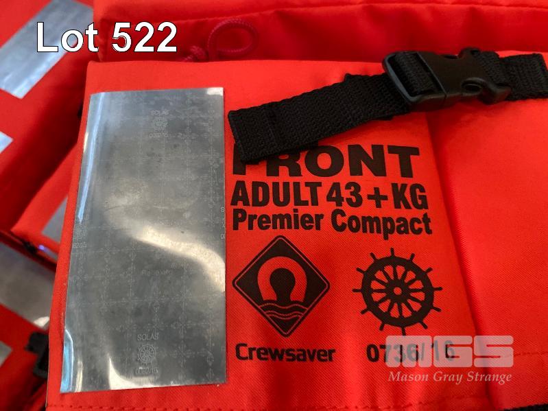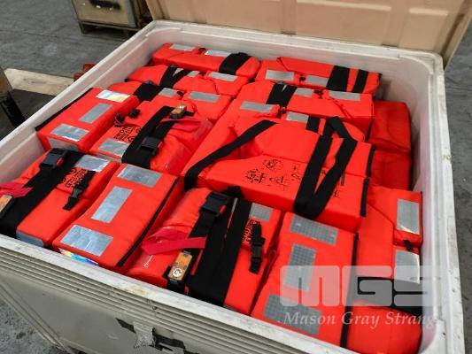 30 x LIFE JACKETS, CREW SAVER MOD: PREMIER COMPACT 0736/16 SUIT PERSON WEIGHT 43kg OR MORE WITH ILLUMINATED FLASHING BEACON LIGHT WATER OR SELF ACTIVATED HIGH VIS REFLECTIVE TAPE WITH NALLY MEGA BIN 1160 x 1160 x 780mm (H)