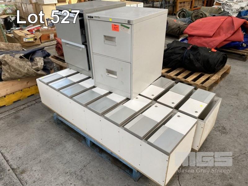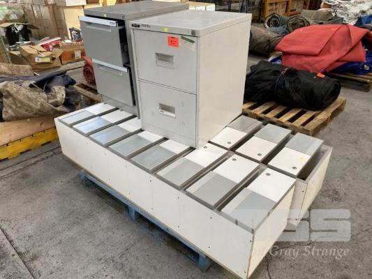 2 x 2 DRAWER STEEL FILING CABINETS & 2 x 8 PIGEON HOLE STORAGE UNITS, 1700 x 450 x 350mm