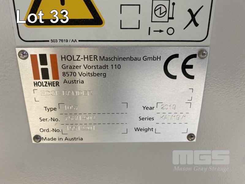 AUTOMATIC EDGE BANDER, HOLZHER MOD: 1057 STREAMER DOM: 2019 S/NO: 758/1-902 SERIES: KAM19VI WITH AUTO LOAD ARM, VACUUM ASSIST COMPAKTO MOD: 35-VACUUM ARM COMPAKTO MOD: 24/15WT CONVEYOR TABLE 1000mm (W) DOM: 2019