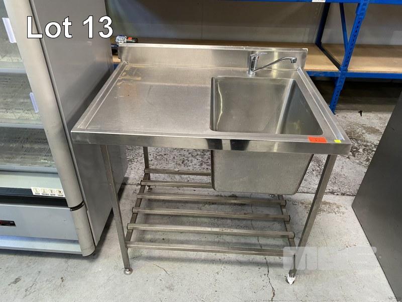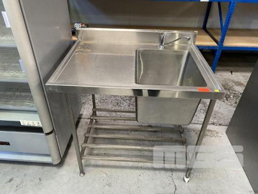 STAINLESS STEEL SINGLE BOWL SINK, 100 x 75cm WITH SPLASHBACK & MIXER TAP