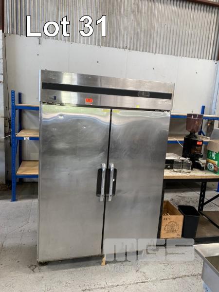 UPRIGHT 2 DOOR CHEFS FREEZER, SKOPE BC126 STAINLESS STEEL CASED, 240V (NOTE: NO SHELVES)