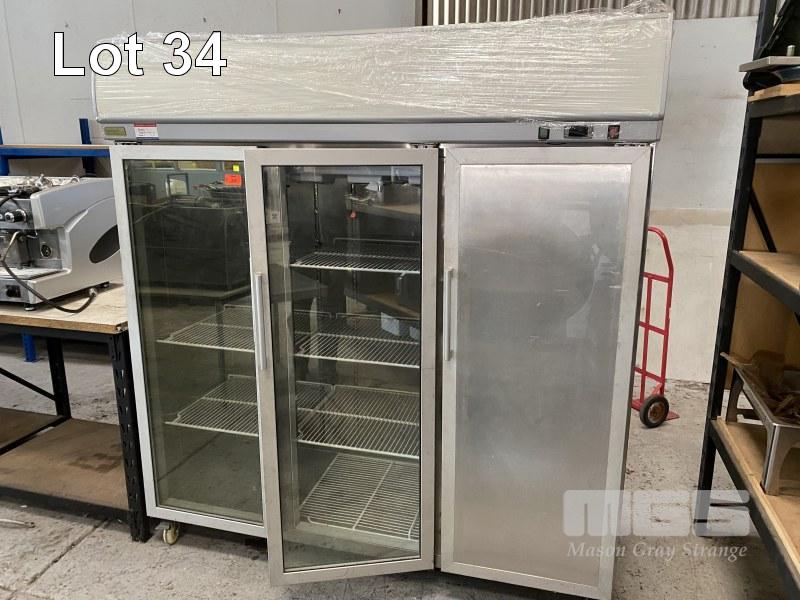 UPRIGHT 3 DOOR FRIDGE, THERMATECH 240V (NOTE: 1 x DAMAGED DOOR)