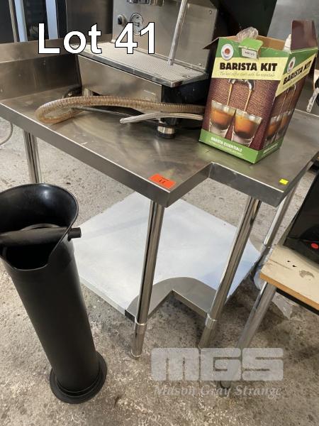 CORNER STAINLESS STEEL PREP BENCH, 90 x 90cm 2 TIER WITH SPLASHBACK