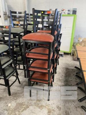 12 x CAFE CHAIRS, BLACK STEEL FRAME, RED VINYL SEAT