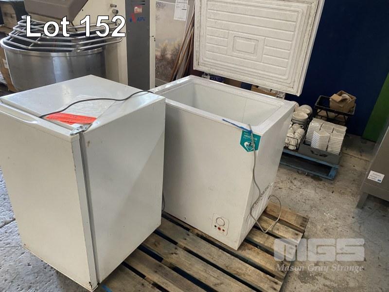 BAR FRIDGE, (NO SHELVES) & CHEST FREEZER, 145 LITRE