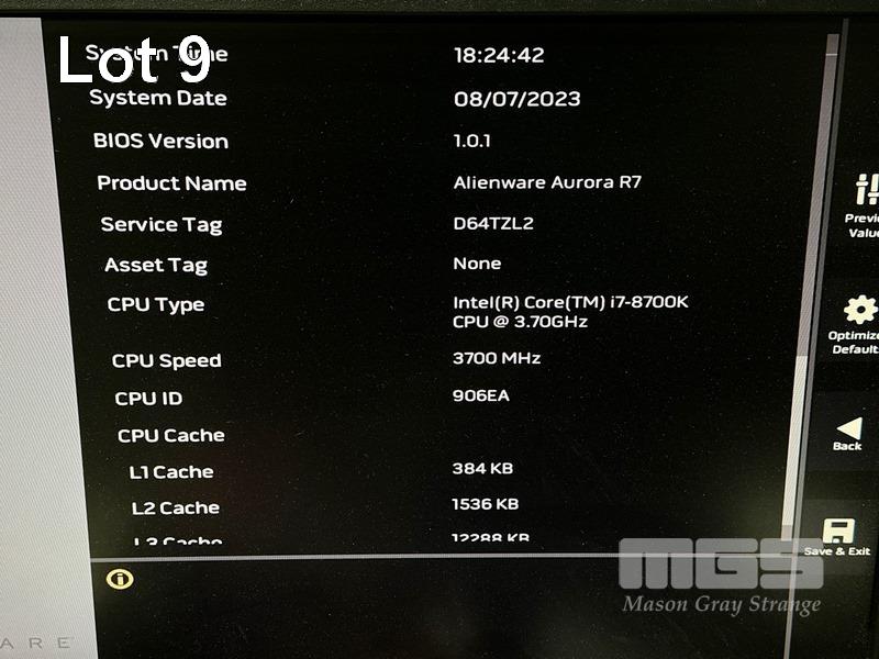 GAMING PC, ALIENWARE AURORA R7, CORE i7 8700K (8TH GEN) @ 3.7GHz, 16GB DDR4 RAM, 512GB NVMe M.2 SSD, DVD-RW, 11GB NVIDIA GEFORCE GTX 1080 Ti VIDEO, Wi-Fi, BLUETOOTH, WINDOWS 11 HOME INSTALLED, KEYBOARD & MOUSE S/N:D64TZL2