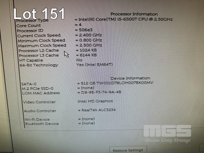 DESKTOP PC, DELL OPTIPLEX 3050 MICRO, CORE i5 6500T (6TH GEN) @ 2.5GHz, 8GB DDR4 RAM, 512GB SSD, INTEL HD VIDEO, 6 x USB, WINDOWS 10 HOME INSTALLED & POWER SUPPLY (NO KEYBOARD, NO MOUSE) S/N:46R1QM2