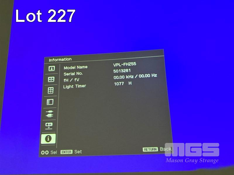 LASER PROJECTOR, SONY VPL-FHZ55 WUXGA 3LCD, 4,000 LUMENS, HDMI INPUT, 1,077 HOURS SHOWING (NO REMOTE) S/N:5013281