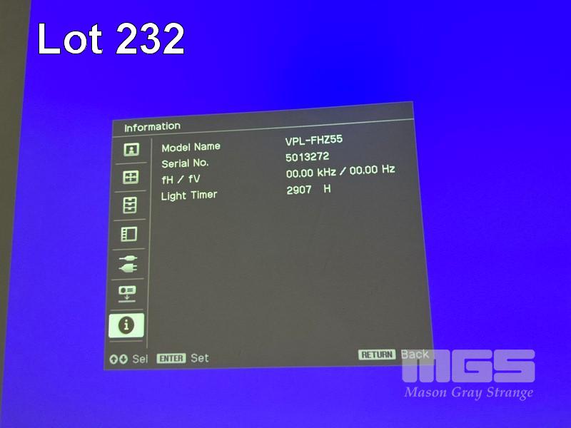 LASER PROJECTOR, SONY VPL-FHZ55 WUXGA 3LCD, 4,000 LUMENS, HDMI INPUT, 2,907 HOURS SHOWING (NO REMOTE) S/N:5013272