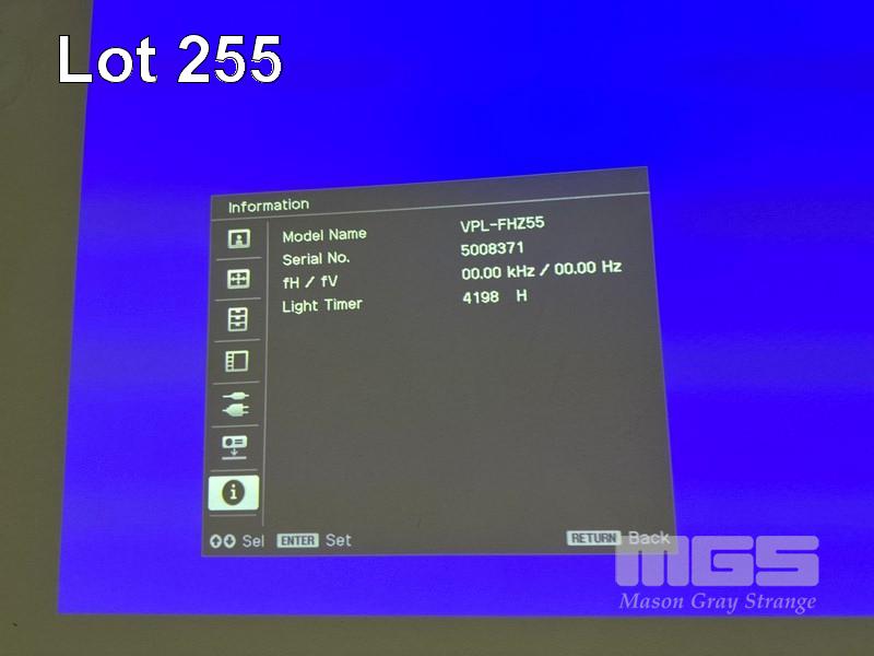 LASER PROJECTOR, SONY VPL-FHZ55 WUXGA 3LCD, 4,000 LUMENS, HDMI INPUT, 4,198 HOURS SHOWING (NO REMOTE) S/N:5008371