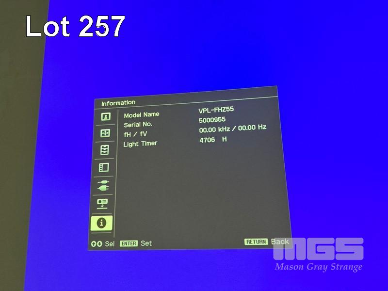 LASER PROJECTOR, SONY VPL-FHZ55 WUXGA 3LCD, 4,000 LUMENS, HDMI INPUT, 4,706 HOURS SHOWING (NO REMOTE) S/N:5000955
