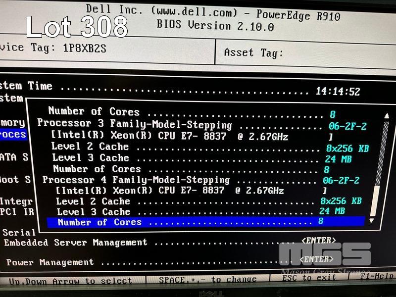 RACKMOUNT SERVER, DELL POWEREDGE R910, 4U, 4 x XEON E7-8837 @ 2.67GHz, 1024GB ECC DDR3 RAM (64x16GB), 8 x 600GB SAS HDD, 4 x PSU (NO CABLES) S/N:1P8XB2S