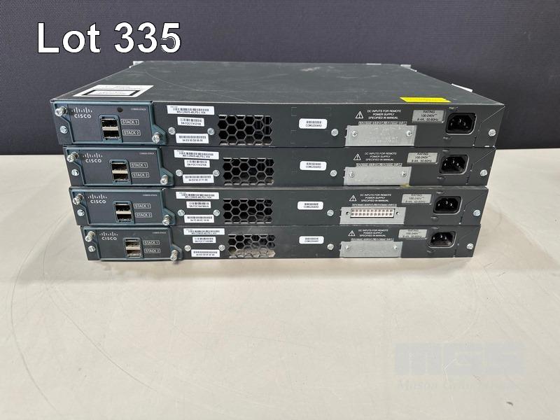 4 x CISCO CATALYST 2960-S SERIES PoE+ 48-PORT SWITCHES, WS-C2960S-48LPS-L WITH C2960S-STACK MODULES & STACKING CABLES S/N:FOC1741Z108, FOC1741Z10X, FOC1847W0U5, FOC1714X0MK