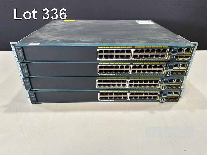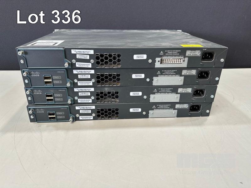4 x CISCO CATALYST 2960-S SERIES PoE+ 24-PORT SWITCHES, MODEL WS-C2960S-24PS-L WITH STACKING CABLES S/N:FOC1715W06D, FOC1741Y0AD, FOC1741Y0HQ, FOC1715Z07B
