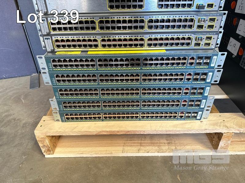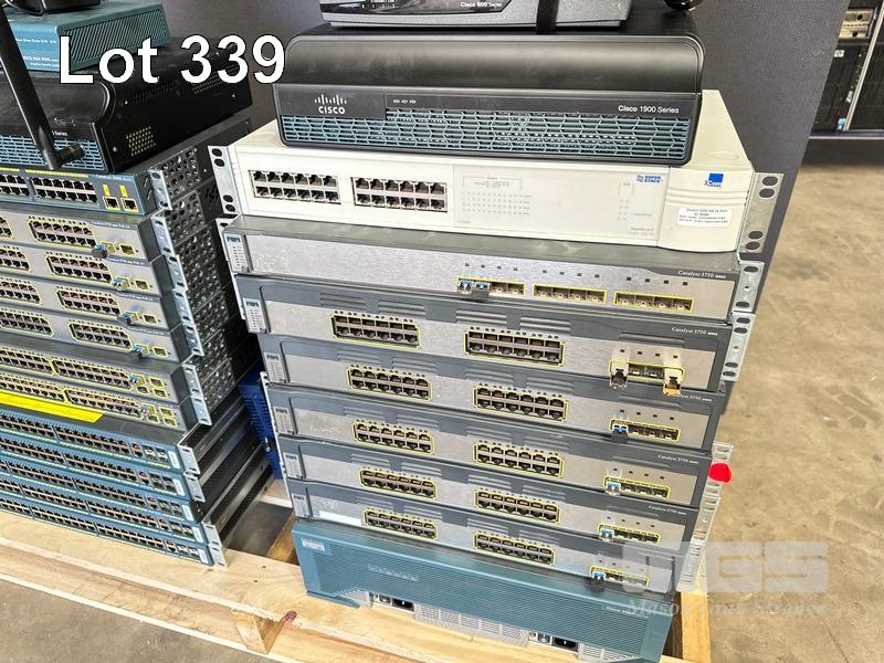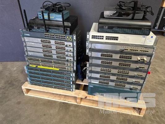 PALLET LOT ASST CISCO SWITCHES & ROUTERs INC. CISCO CATALYST 3750 SERIES PoE-24 24-PORT CISCO CATALYST 2960 SERIES 24-PORT CISCO CATALYST 4948 48-PORT CISCO 1900 SERIES ROUTERS ETC