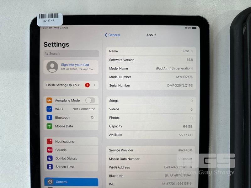 APPLE iPAD AIR 4TH GEN, 64GB, Wi-Fi, CELLULAR, SKY BLUE, MODEL A2072, MYH02X/A WITH SURVIVOR CASE (NO USB-C CABLE, NO CHARGER) S/N:DMPG20YLQ193