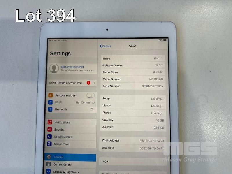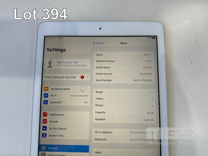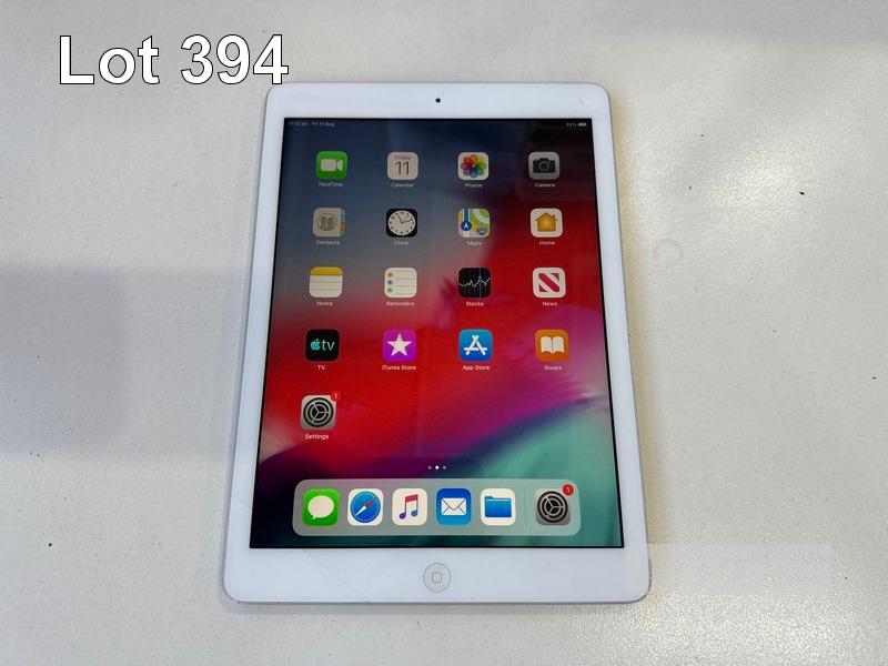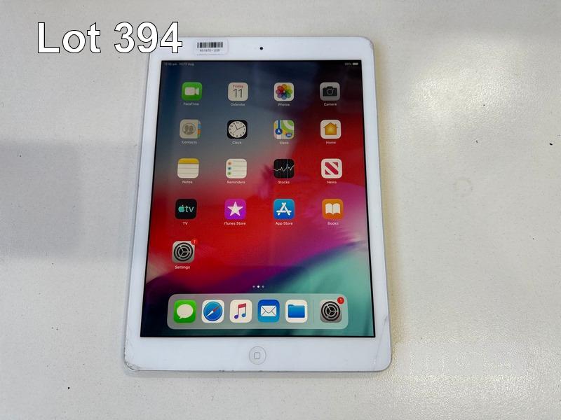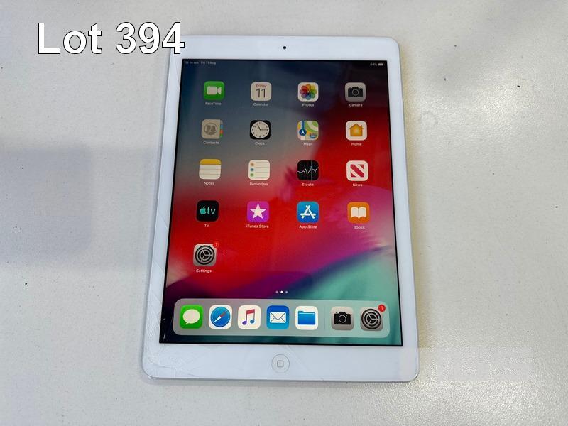 5 x APPLE iPAD AIR, 16GB, Wi-Fi, SILVER, MODEL A1474, MD788X/B (NO CABLES, NO CHARGERS) (NOTE: ALL VARIOUS CRACK LINES ON SCREEN) S/N:DMPN7JHZFK14, DMQN2UJTFK14, DMPN77BBFK14, DMPN8NQ4FK14, DMQMWC78FK14