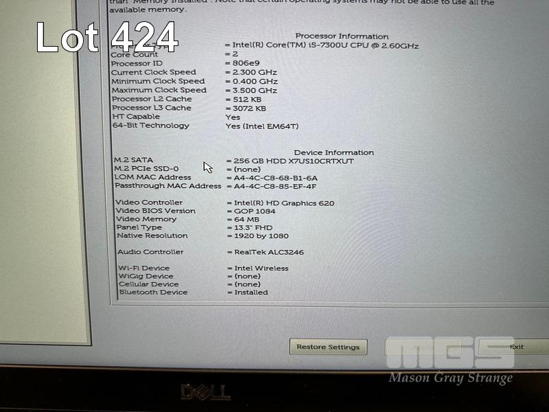 LAPTOP, DELL LATITUDE 7380, CORE i5 7300U (7TH GEN) @ 2.6GHz, 8GB DDR4 RAM, 256GB M.2 SSD, 13.3" WIDESCREEN (1920x1080), INTEL HD GRAPHICS 620, Wi-Fi, BLUETOOTH, WINDOWS 10 HOME INSTALLED & POWER SUPPLY S/N:5WVVPH2