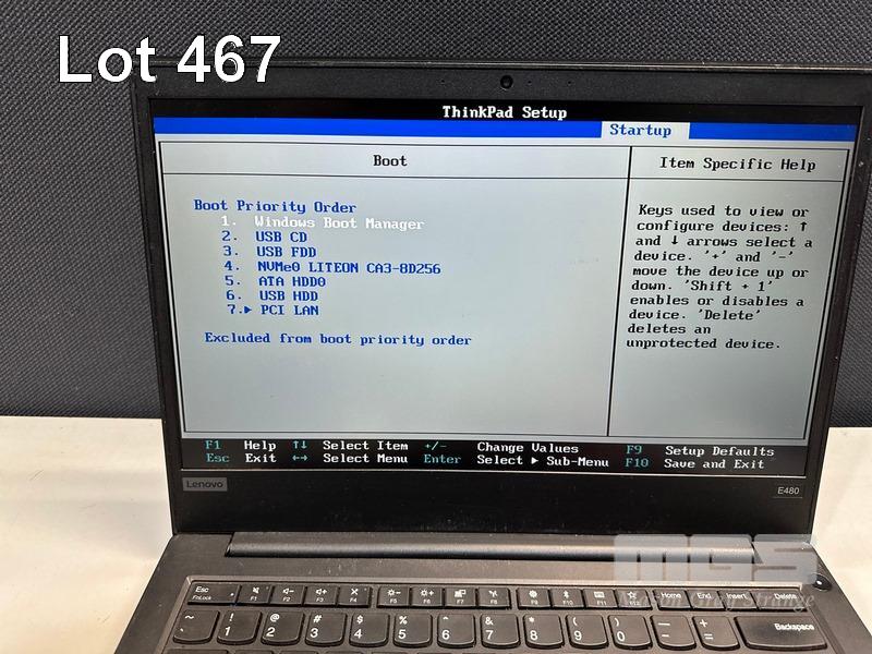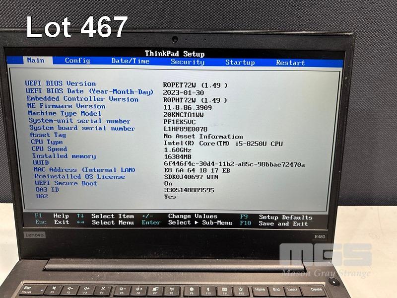 LAPTOP, LENOVO THINKPAD E480, TYPE 20KN, CORE i5 8250U (8TH GEN) @ 1.6GHz, 16GB DDR4 RAM, 256GB NVMe M.2 SSD, 14" WIDESCREEN (1920x1080), INTEL HD VIDEO, Wi-Fi, BLUETOOTH, WINDOWS 10 PRO INSTALLED & USB-C POWER SUPPLY (NOTE: TPM 2.0 NOT DETECTED, MINOR MARKS ON SCREEN) S/N:PF1EK5UC