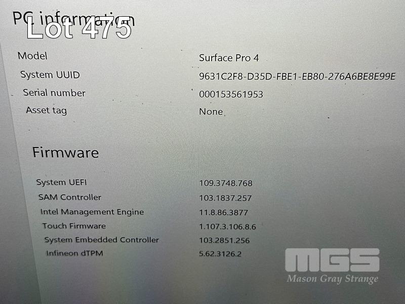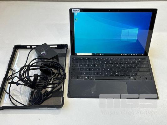 TABLET PC, MICROSOFT SURFACE PRO 4, MODEL 1724, CORE i5 6300U (6TH GEN) @ 2.4GHz, 8GB RAM, 256GB SSD, 12.3" TOUCHSCREEN (2736x1824), INTEL HD GRAPHICS 520, Wi-Fi, BLUETOOTH, WINDOWS 10 PRO INSTALLED, KEYBOARD TYPE COVER, STM DUX SHELL CASE & POWER SUPPLY S/N:000153561953